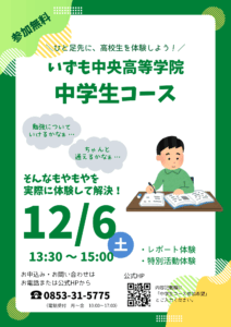12月の個別相談会および中学生コース開催のお知らせです。